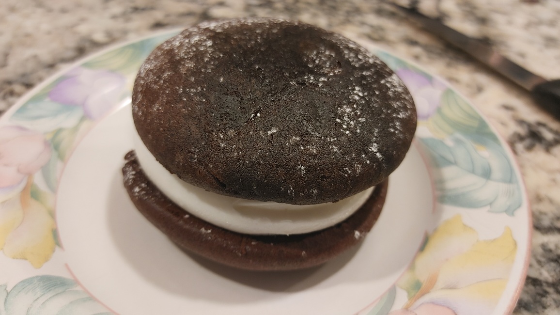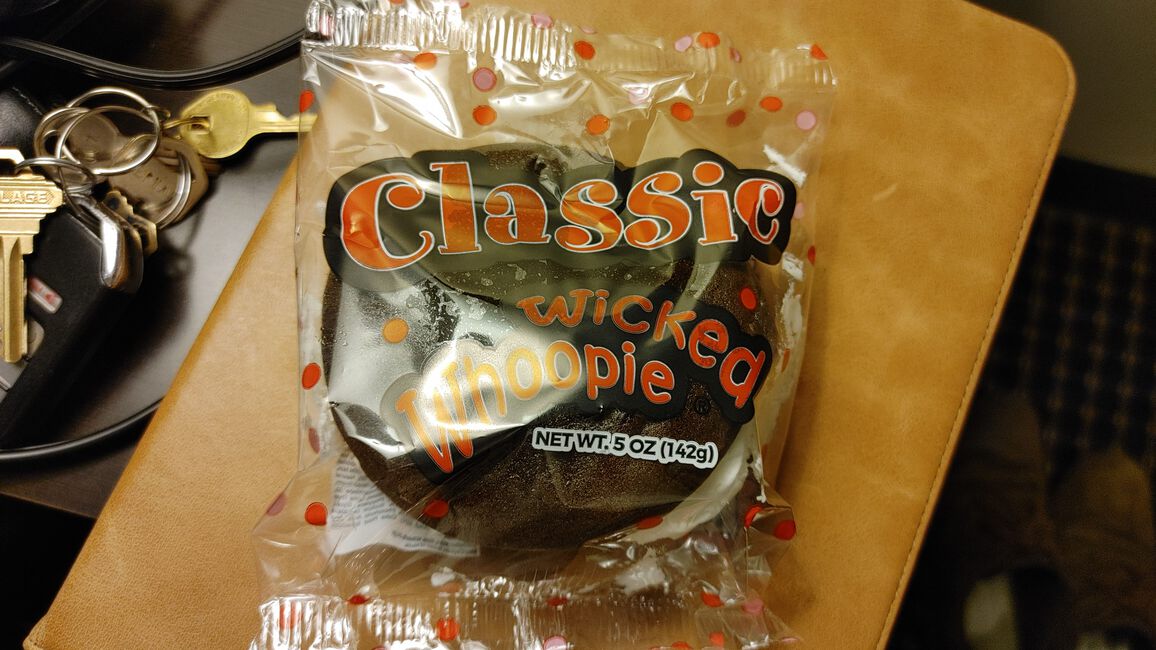 Huge surprise here. When I first picked it up and held it in my hand, major disappointment set in when I noticed the buns were on the softer, cake-like side. I picked up 2 and went back to my Hotel disappointed. When I opened it up and smelled it, the aroma was outstanding. My intent was to eat half and put the other half away, but the flavor was so vibrant and intense that I ate it all, and didn't feel well afterwards from the sugar overdose. This is a really good whoopie pie. I only wish the buns were harder and there were less sugar in the filling. 9/10 and highly recommend.